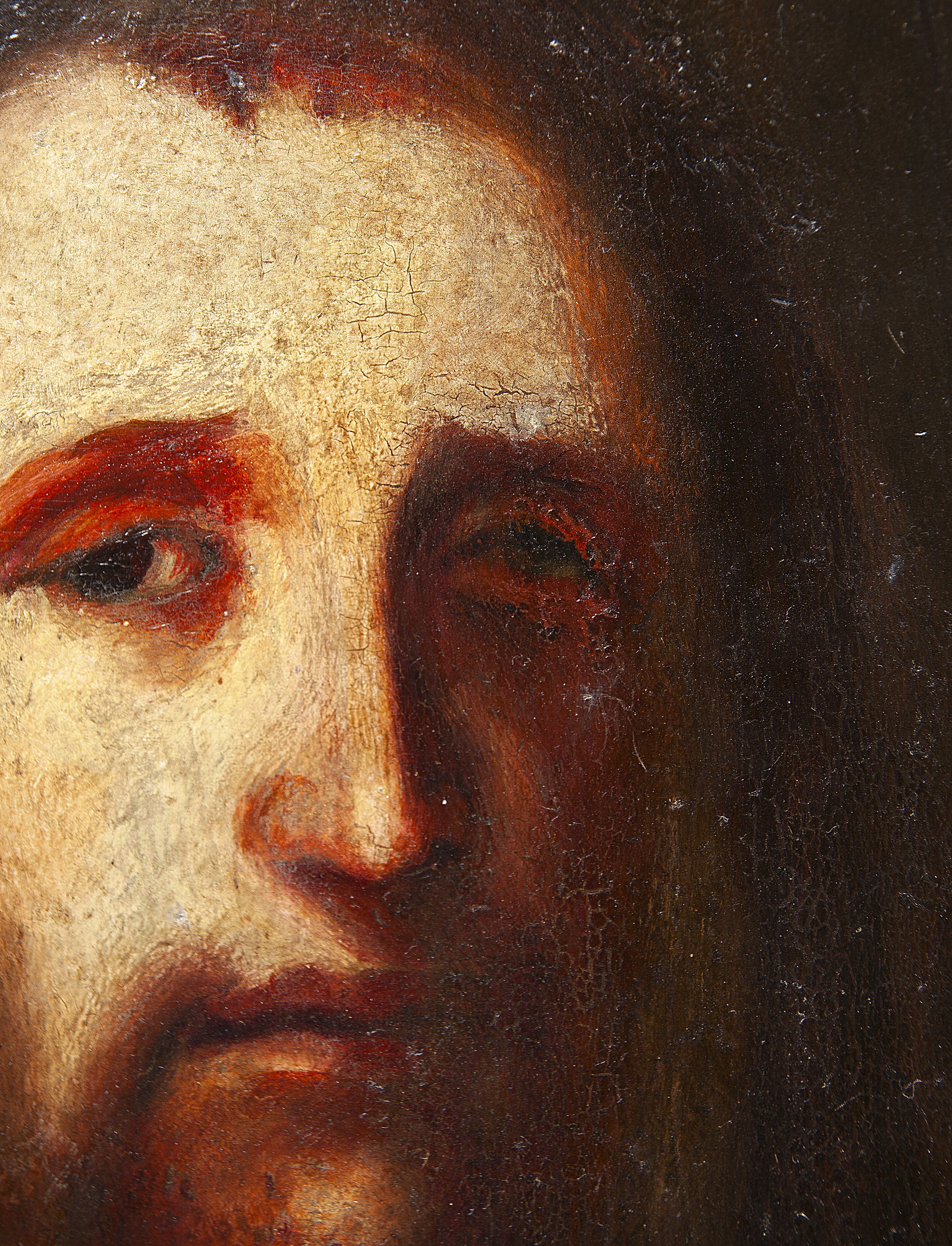 Layers of purified linseed oil varnish applied in microscopic thicknesses. Light emanates from the skin instead of striking it. Atmospheric transitions without rigid contours—an optical construction that Leonardo mastered like no other.